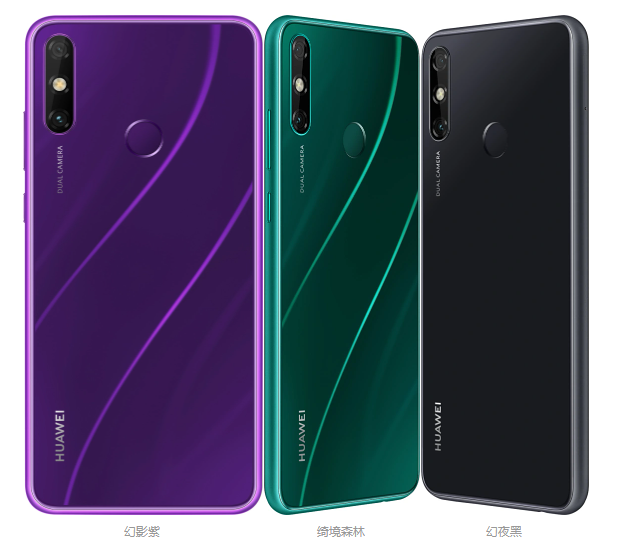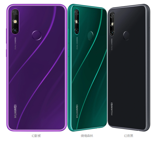 华为畅享 20e拥有幻影紫,绮境森林,幻夜黑三款配色。