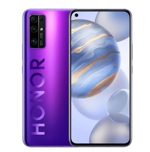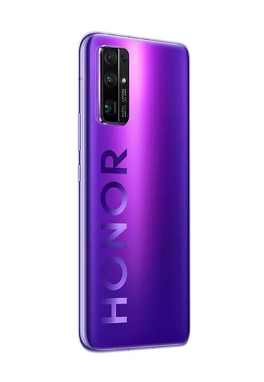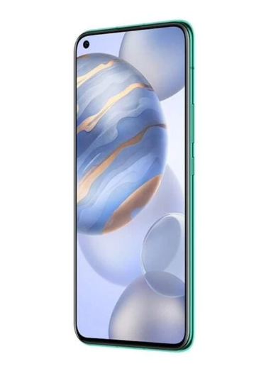 荣耀30配备了一块OLED魅眼屏,机身整体采用了传统直屏设计,前置摄像头采用了开孔设计,屏占比达到91%;机身背面为3D曲面玻璃设计,机身右侧保留了电源键和音量键,中框顶部和底部做了凹槽处理,钛空银和霓影紫两款颜色机身背后采用符号化表达,将HONOR字母LOGO排列在矩阵相机的延长线上;机身顶部的扬声器和降噪Mic采用了隐藏式设计,机身底部取消了3.5毫米耳机孔,保留了SIM卡槽、Type-C接口、扬声器。