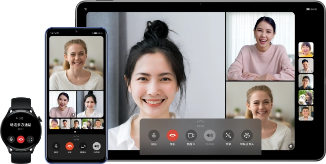 华为畅享50里的畅连通话支持高清音视频通话,能连接平板、手表、智慧屏等设备,支持最多12方通话。
