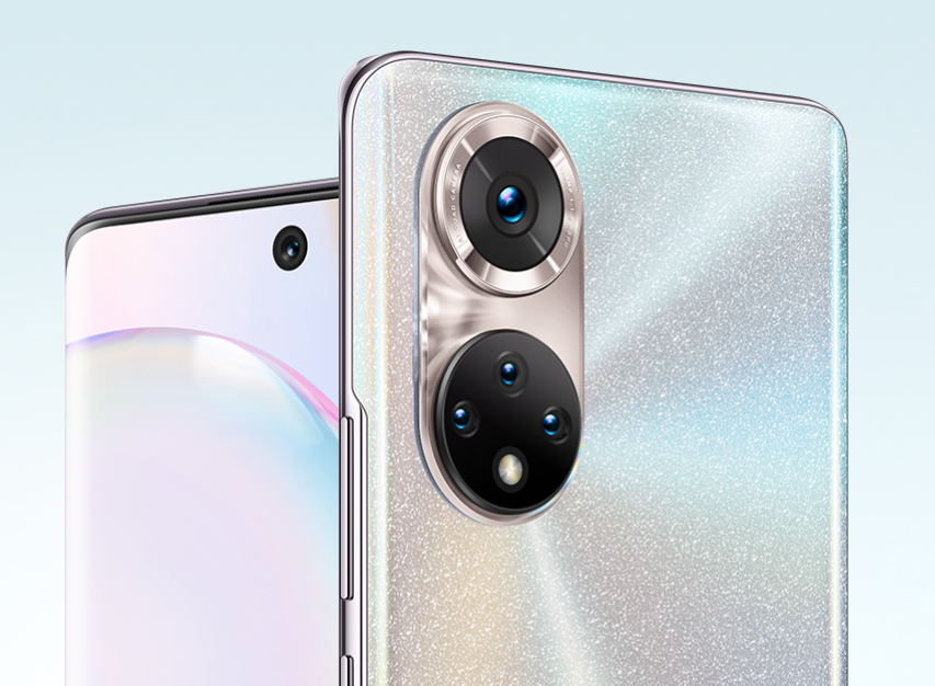 钻彩工艺1 璨若繁星,全新钻彩工艺,采用极其复杂却值得付出的双膜双镀双纹处理。双层膜片于平面中创造更好的景深效果,双层镀膜呈现更好的质感,双层纹理带来更丰富的纹理细节。让每一款色彩,璀璨如繁星点点。很美很独特的双镜布局双镜为双同心圆设计,双镜犹如探索世界的双眼亦是记录影像的镜头。形与意的结合成为荣耀50系列独特的标志性元素。一瞬即永恒,主摄外圆如一枚金属戒环镶嵌,戒环寓意永恒,一段有趣与美的影像也是记忆的永恒。