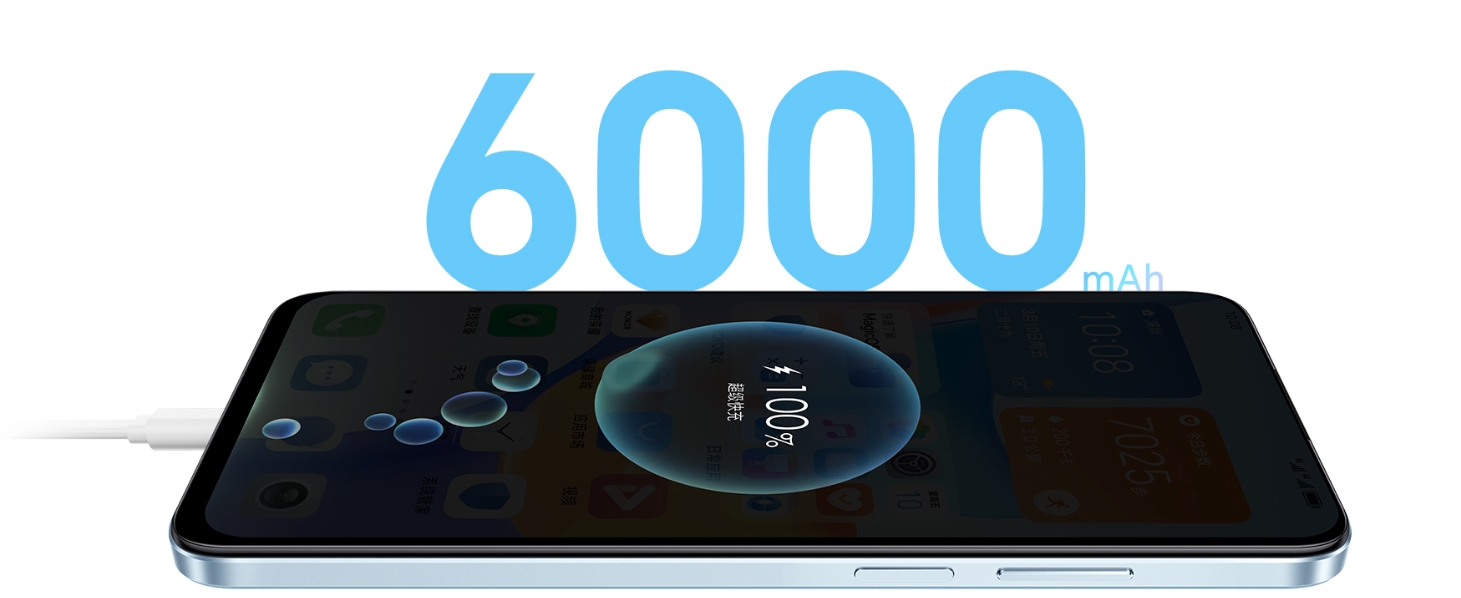 2. 6000mAh为电池典型值,电池额定值为5900mAh。数据来源于荣耀实验室,温度25摄氏度,相对湿度45%-80%。数据为理论计算得出,电池单体在荣耀实验室环境下进行抽样检测,已完成1000次循环,寿命保持仍在87%以上。因使用场景、个人使用习惯等因素不同,实际体验可能有所差异。最大支持有线充电功率35W,需搭配原装充电器及充电线使用,实际充电功率会因场景不同而变化。