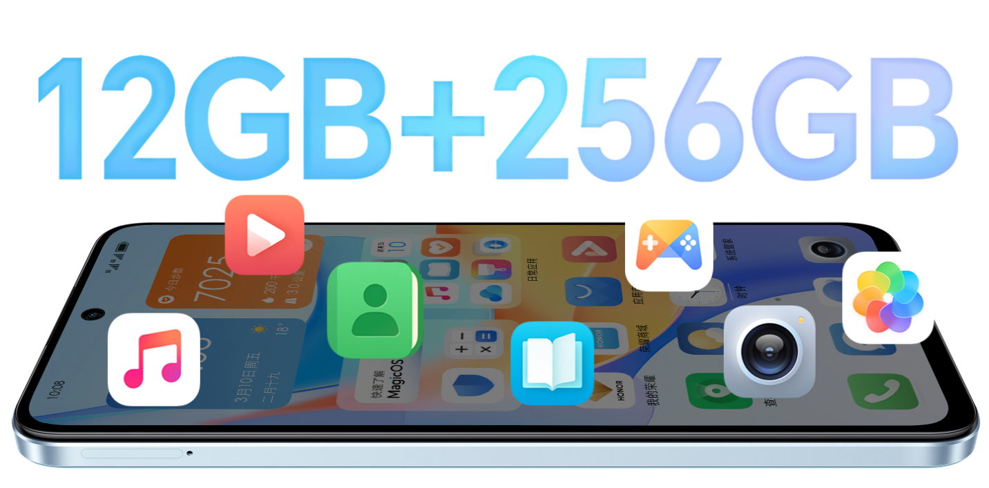 1. 实际可使用内存/存储小于此值,因为系统占用;另有其他内存/存储版本可选,详情请关注荣耀官网。通过荣耀智慧运存扩展技术,8GB运行内存可等效扩展为16GB, 12GB运行内存可等效扩展为20GB,该特性待OTA升级后支持。因网络环境、使用场景、个人使用习惯等因素不同,实际体验可能有所差异。