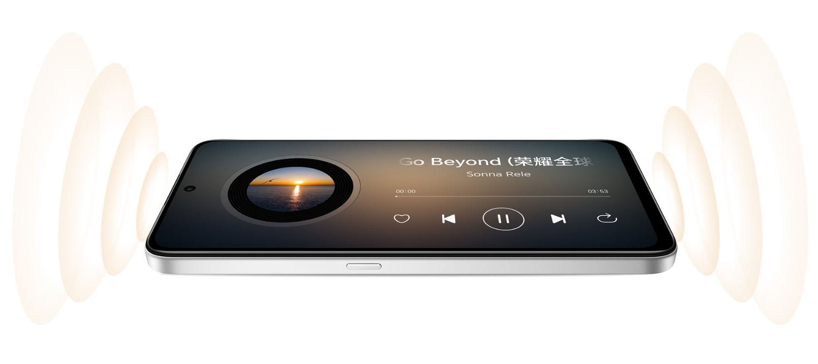 高刷护眼屏,清晰透亮16,6.77 英寸超大屏幕17,120Hz 超高刷新率18,阳光显示增强技术,智能贴膜检测技术19,类自然光护眼,DC 无频闪调光,护眼模式,电子书模式,暗光舒适性,深色模式。400% 立体声双扬,沉浸视听,支持大音量模式,户外多场景来电不漏接,音乐、视频、导航声音更洪亮;支持视频通话 AI 降噪,环境嘈杂依旧听得清;*数据来源于荣耀实验室,400% 超大音量需开启大音量模式,对比同机型第 15 级音量,支持来电铃声、通话、媒体播放、导航等场景,不支持耳机播放和蓝牙输出,产品功能体验以实际为准。