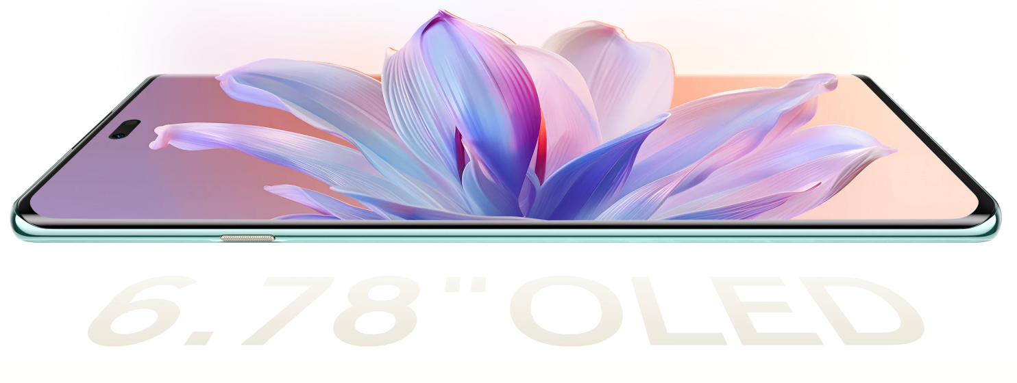 1.5K 臻彩护眼屏¹⁷,赏心悦目。采用 3D 双曲 OLED 屏幕,1.5K 视网膜级分辨率,细腻还原画面细节,无论浏览图片还是观看视频,沉浸式享受满屏臻彩;超级触控技术加持,屏湿手湿都不怕,屏幕滑动始终流畅自如¹⁸。屏幕参数为6.78"OLED、437 ppi、2700 × 1224 高分辨率、120 Hz智能高刷¹⁹、2160 Hz高频 PWM 调光²⁰、P3广色域、AOD全屏显示,还具备AI 湿手触控¹⁸,无惧雨淋、泼溅²¹。AI HDR 图片高动态显示²²,智能解析图片亮度分布,识别高光区域,提升屏幕峰值亮度,呈现真实通透的高动态效果;HDR Vivid 视频高动态显示,HDR Vivid 视频技术,逐帧重塑画面,保留明暗处细节,结合屏幕高峰值亮度,让整体画面更通透鲜活。暗光下,更护眼,该机获得SGS 低视觉疲劳 A+ 金标认证,配备夜间节律调光²³,护眼模式、电子书模式会根据使用时间和环境光智能降低有害蓝光,缓解长时间看屏幕眼睛的不适感;AI 暗部增强,根据环境光亮度,动态增强暗部像素亮度,保证夜晚场景暗部有细节,亮部不刺眼。