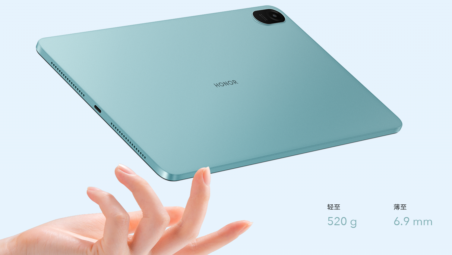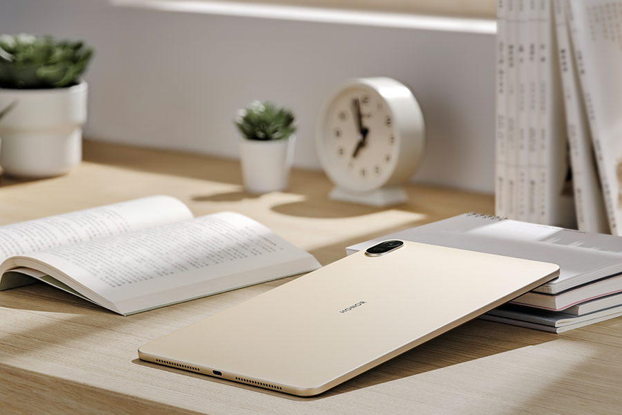 12英寸全面屏¹,更大的,才沉浸,震撼的12英寸2K全面屏,可视面积比10.4英寸平板高约三分之一,视界更开阔,高达87%的屏占比⁸,无论是观影还是学习,都能给你带来更沉浸的旗舰级视觉享受;12英寸大屏,2K分辨率,87%屏占比,7.2mm窄边框,10.7亿色彩显示⁹。一体化金属机身,意想不到的轻薄,轻薄的金属机身,背壳采用阳极氧化喷砂工艺,手感细腻,浑然天成,轻至520g,厚度仅6.9mm²,单手持握更舒适,轻至520g,薄至6.9mm。立体声8扬声器,影院级听觉感受,4高音+4低音专业音频单元,搭载8.8cc音腔,音量更震撼,HONOR Histen+DTS:X®Ultra双音效调校,智能识别当前音频场景切换音效模式,获得更佳听觉体验。