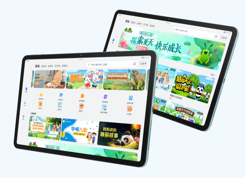 家长管控³,让孩子健康使用平板,限制平板使用时长,设置应用白名单,通过下拉菜单一键切换孩子模式,孩子使用健康,家长才安心。教育中心,海量资源放心学⁵,丰富的精品学习课程&素质拓展教育资源,通过个性化精准学,智能测评帮助孩子找到知识薄弱点,规划专属学习路径,让学习事半功倍;汉语词典,英语词典,AI课程表,内容访问限制,应用管理。