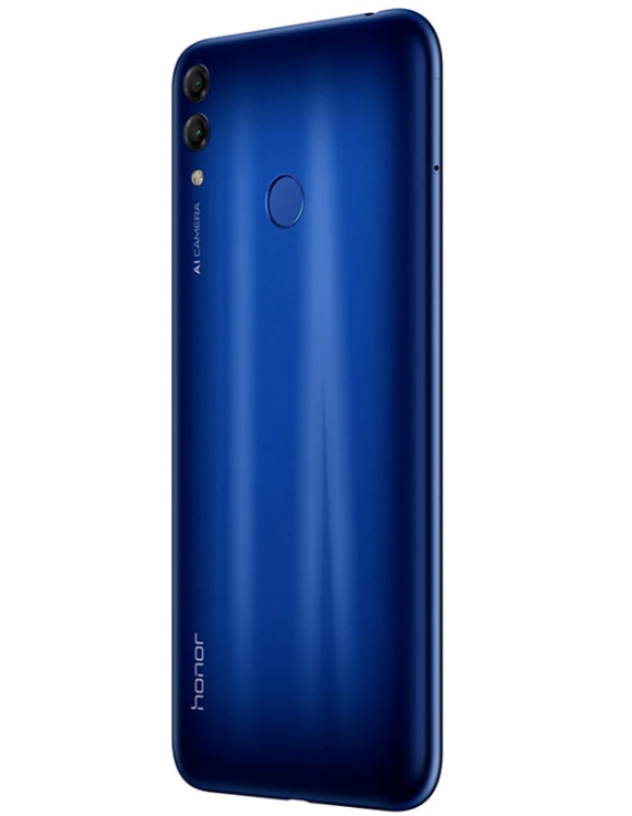 荣耀畅玩8C正面搭载一块6.26英寸TFT LCD(IPS)材质屏幕,采用刘海设计。在刘海区域这里集成了它的前置摄像头、听筒、光线距离传感器、一颗柔光灯。下巴区域保留荣耀的LOGO标志,竖置双摄、闪光灯、相机Logo连成一排,底部采用3.5毫米耳机接口,充电口则是使用Micro USB接口。