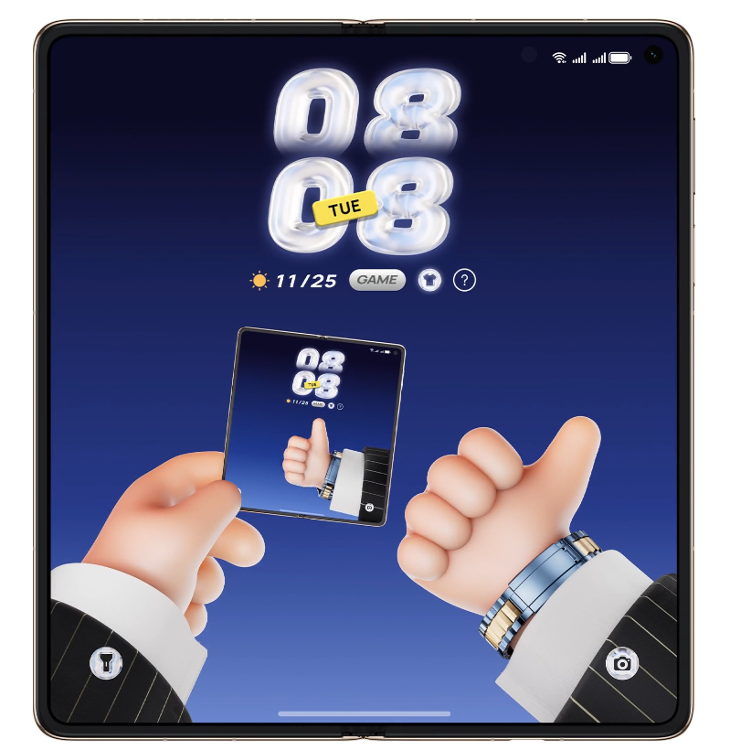 | 前置相机: | 内屏:800 万像素摄像头(F2.2 光圈) 外屏:800 万像素摄像头(F2.4 光圈) |