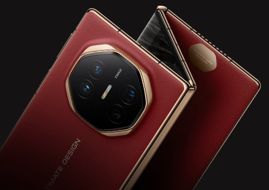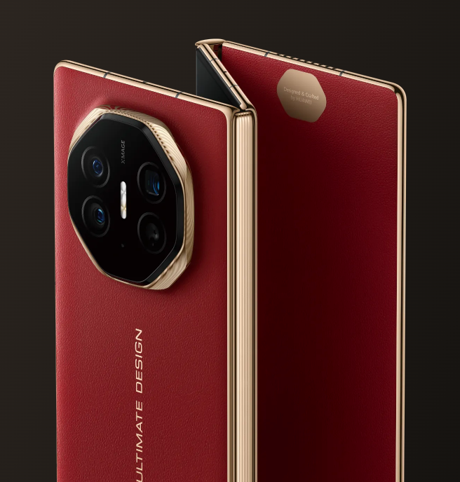 瑞红,高雅华贵,大气恢弘,于掌间尽显气质,典雅素皮,质感不凡。乌金腰线,雅致光影,匠造徽标,臻品风尚。华为天工铰链系统,首次实现内外弯折4,双轨联动,沉稳自如,一切尽在掌控。