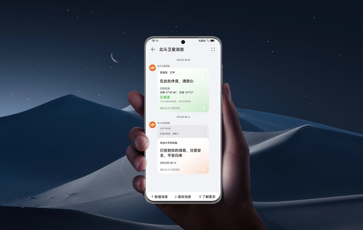1.HUAWEI P60 Pro 为北斗卫星消息提供移动终端硬件,需在空旷无遮蔽处使用。首次使用前需在有地面网络的环境下,通过畅连 app 激活。接收方可以通过畅连 app 或短消息内网址链接,按照预置消息向 HUAWEI P60 Pro 回复消息,HUAWEI P60 Pro 用户可通过畅连 app 北斗卫星消息公众号“接收消息”查收。此功能仅限中国大陆地区(不含港澳台地区)。华为将配合公众测试验证,功能及活动规则详情请以官方信息为准。