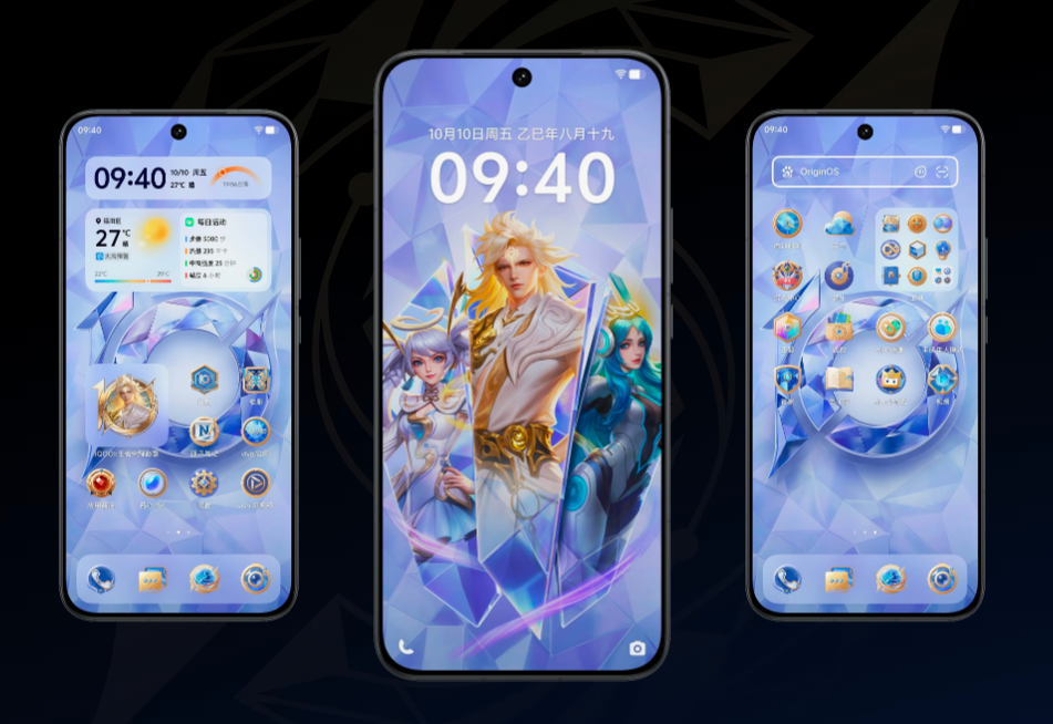 点亮屏幕,唤醒王者。「王者之旅」主题系统定制,锁屏与熄屏动画以李白、孙尚香和貂蝉为视觉核心,技能高光迸发,唤醒峡谷畅玩体验;内置十周年纪念壁纸,重绘系统图标,从解锁到交互,专属感拉满。全新图标,深度融合,重新绘制 80 个 app,包含 52 个 OriginOS 系统 app,28 个第三方高频使用 app,滑动桌面如操控王者地图,仪式感拉满。定制英雄光栅锁屏,多位英雄,亮屏可见,内置英雄图集,4 种转场方式模拟真实光栅卡视效,倾斜切换视角,多位英雄,亮屏可见。英雄桌面组件,一键开黑,选择喜欢的英雄设置成桌面组件,点击即听经典台词,视觉与台词沉浸还原,更有一键秒进游戏,随时开黑,每时每刻与你并肩。