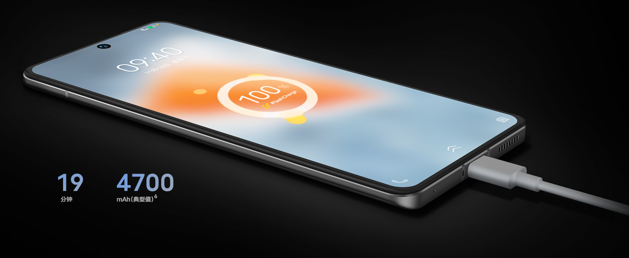 7.充电数据源自我司实验室环境测试所得,测试环境:环境及手机温度 25℃±1℃,测试条件:手机电量为 1% 时,关闭除通话以外的其他手机服务和功能,在熄屏状态下,搭配产品官方标配充电器 + 数据线充电;实际数据可能因测试环境不同、用户充电场景不同、手机充电初始温度不同、电池长期使用损耗等因素存在差异。