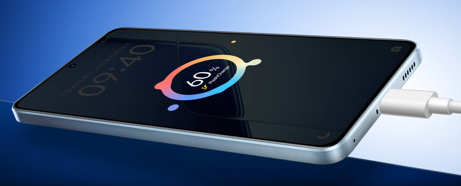 22.充电数据源自我司实验室,环境及手机温度 25℃ ± 1℃,超快模式下,手机电量为 1% 时,关闭除通话以外的其他手机服务和功能,在息屏状态下,搭配产品官方标配充电器 + 数据线充电;实际数据可能因测试环境不同、充电场景不同、手机充电初始温度不同、电池长期使用损耗等因素存在差异。
