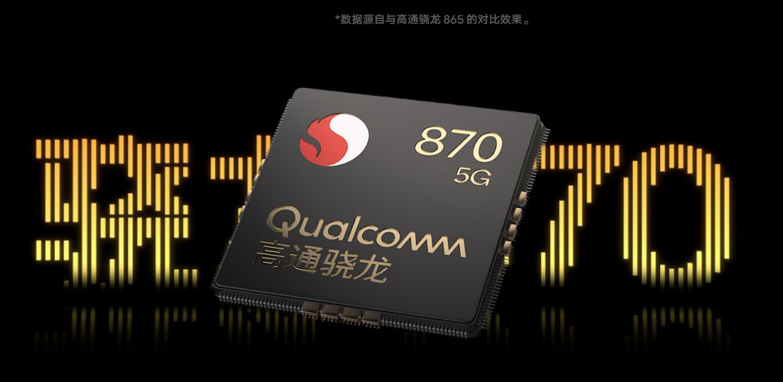 强悍性能,破风而来。强悍实力,源自强大"芯"脏,高通骁龙 870,CPU/GPU 性能提升至 110%*,更高性能、更低功耗,无论是游戏还是日常,都更能向全速进击,畅玩自是底气十足。