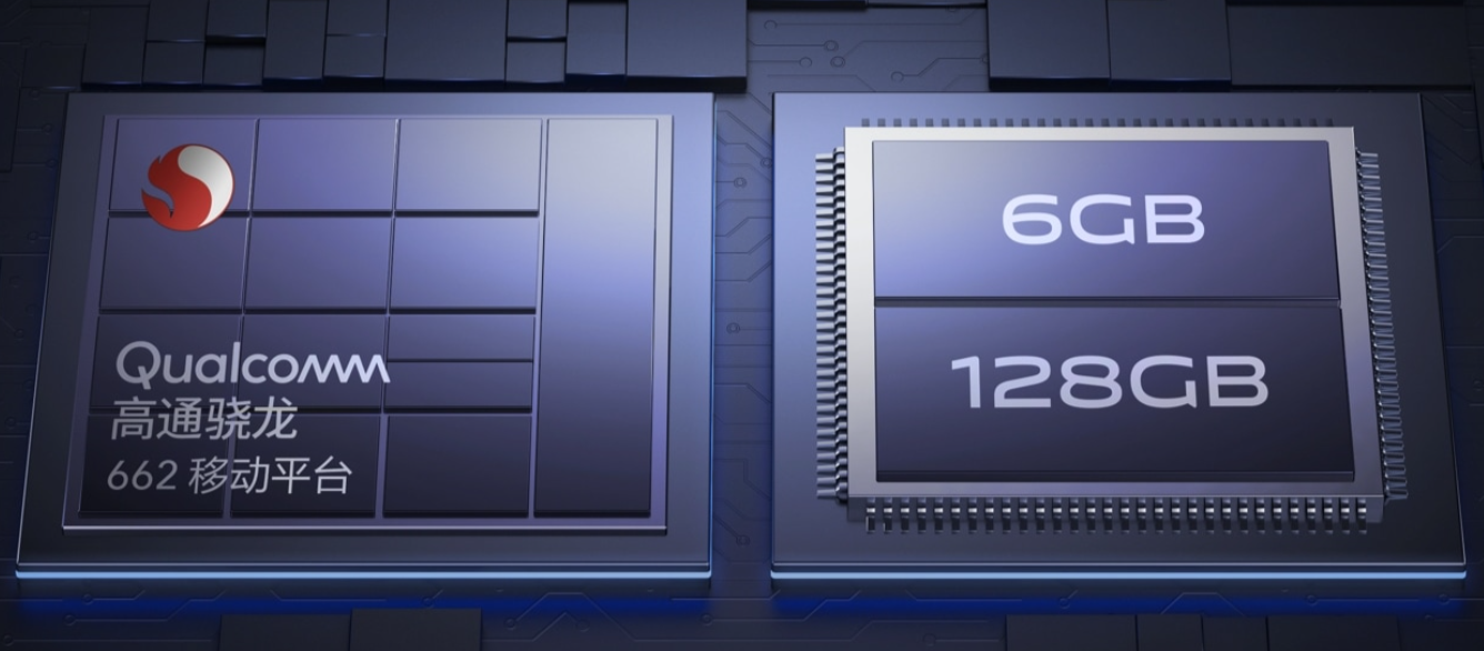 其搭载高通骁龙 662 处理器,配备 128GB 大内存,可轻松处理游戏或多个应用程序,也能为音乐、电影或照片提供足够的存储空间,有 4GB/6GB RAM与 64GB/128GB ROM的配置。