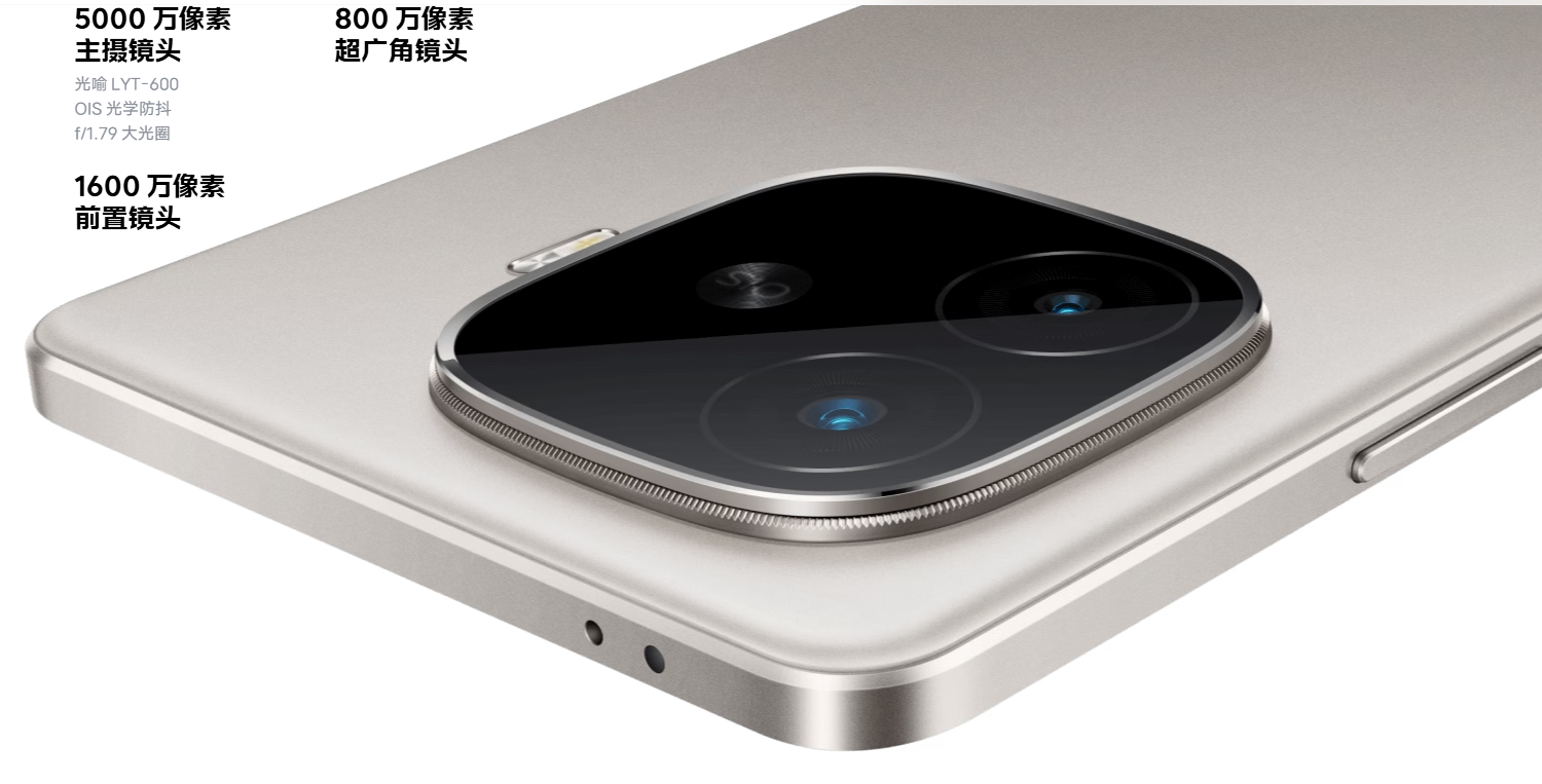 影像系统搭载索尼光喻LYT-600传感器,配备2*2 OCL等旗舰级对焦技术,5000万像素主摄镜头拥有f/1.79大光圈且支持OIS光学防抖,另有800万像素超广角镜头与1600万像素前置镜头,助力高清大片直出,定格日常精彩时刻。同时搭载旗舰同款NICE算法,NICE神经图像计算引擎将降噪与细节增强流程AI化,进一步提升清晰度,轻松拍出清晰质感大片。在拍摄功能上,支持1x、2x质感人像拍摄,影像旗舰同款算法加持下,主体清晰、光影自然,实现单反级背景虚化;作品级夜景拍摄采用影像旗舰同款算法,呈现更清晰、更出彩的氛围感夜色;即刻抠图功能可一键提取图片多主体并精准识别,支持复制、保存、分享,适用于办公、媒体内容创作、娱乐等多种场景;动态精彩抓拍中的运动抓拍能稳稳定格高光时刻,抓拍速度更快、细节更丰富,运动特写可将按下快门的高光瞬间慢镜回放;还提供质感色彩模式,高反差对比使色彩浓郁,彰显个性表达,让图片情感细腻饱满。
