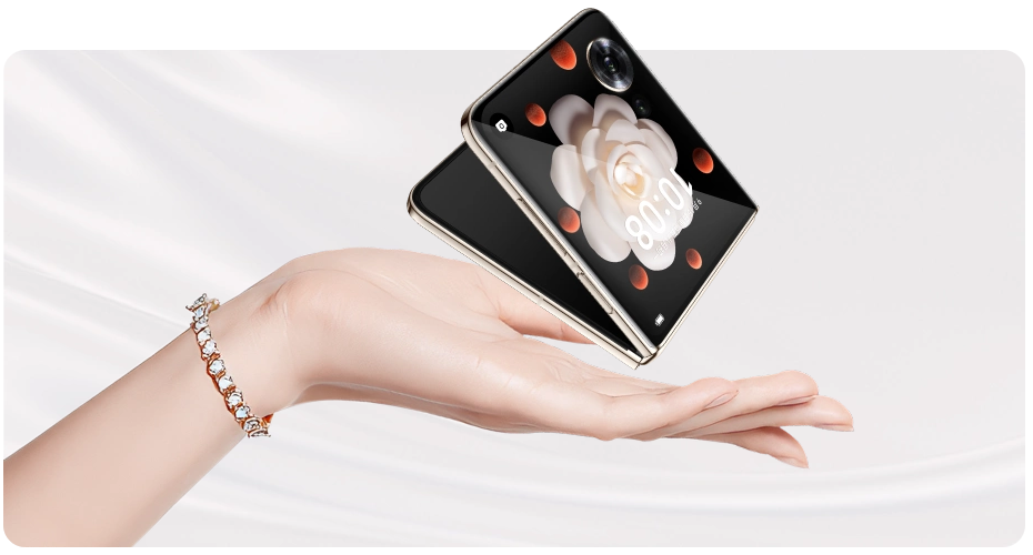 超多个性主题,心动无需展开精心设计多款外屏主题供用户选择,可以互动的治愈萌宠,百变魔方和高级腕表,时刻陪伴,情绪价值源源不断。单反级写真相机,112°超广角微距镜头13,广角微距二合一,112°超广角,2.5厘米超短对焦距离。索尼IMX906单反级写真主摄,5000万像素11,支持OIS光学防抖,1/1.56''超大底,4合1,2.0μm等效大像素12,f/1.9大光圈。前置索尼IMX816单反级写真镜头,5000万像素11,支持自动对焦,f/2.0大光圈。背景自然虚化,模拟专业单反相机的光学虚化效果14,虚实过渡自然有层次。AI合影增强15通过多帧处理,将合影的闭眼人物修复为睁眼,同时增强人像细节,校正边缘人脸畸变,提升合影成片率。4D自然立体美妆16,多种美妆选择,同时支持自定义妆容,体现你不同风格的美。创新折叠影像,悬停自拍17,解放双手,轻松出片。后置自拍,更好的镜头,更高级的自拍。双屏预览一起预览,共同创作。DV拍摄,模拟DV形态拍摄,复刻经典仪式感。4K延时摄影,轻轻一放,纵观云卷云舒。“广”纳天地,超广角镜头,广阔视野,尽收眼底。