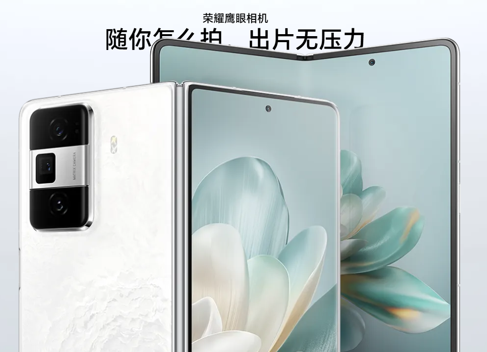 这一折,轻薄相见。合上仅9.8mm,展开仅4.65mm,轻至229g,折叠机的体验,直板机的轻薄。青海湖电池,添动力,少焦虑。5000mAh超大容量电池,兼具超薄手感与超长续航。66W有线超级快充、50W无线超级快充,不论有线无线,让你随时在线。荣耀鲁班钛金铰链轻薄架构,大展身手荣耀鲁班钛金铰链,通过SGS高可靠折叠品质金标认证,可靠结构、合理设计,释放轻薄更多可能。荣耀自研盾构钢,坚韧,以轻薄之名。强度高达1800MPa,丝滑平展,稳定悬停,为轻薄保驾护航。旗舰双屏,凭实力抢眼,AI离焦护眼功能,AI重构显示,缓解视疲劳,AI模拟离焦镜近视防控原理,部分拉远图像,提升脉络膜厚度,缓解短暂性近视,舒缓视疲劳。