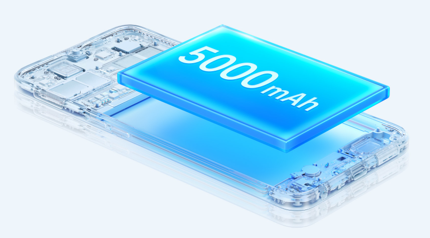 5000mAh 大电池,续航硬实力。更有夜间待机功耗优化算法,一觉醒来依然电量满满。续航数据显示:优酷追剧约 12.53 小时,刷短视频约 11.49 小时,玩游戏约 7.40 小时,微信视频聊天约 7.54 小时,看新闻约 18.38 小时⁷。