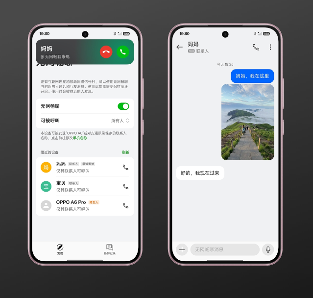 21.无网通信仅支持已开通该功能的 OPPO 设备之间使用,该功能的工作频率、功率符合国家无线电管理的有关规定,请遵守民航局相关规定,禁止在飞机上使用该功能,手机的语音、图文通信效果和连网稳定性与环境复杂程度有关,该功能不能替代网络运营商所提供的服务。因软件和硬件技术优化、系统版本、网络环境、个人使用习惯等因素不同,实际体验效果会随不同场景动态变化,请以实际体验为准。
