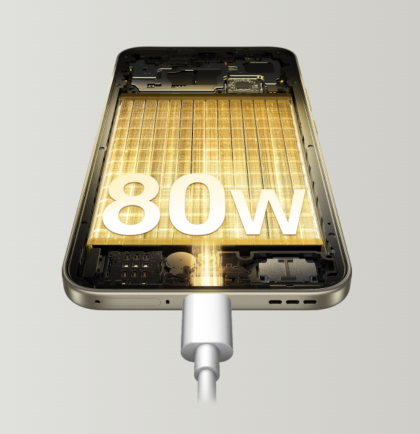 7000mAh 六年长寿电池搭配 80W 闪充,续航与充电兼顾。