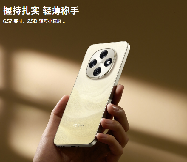 OPPO A6 Pro拥有三款配色,流水生金款为璀璨金色纹理,独特的闪光砂工艺,金光闪闪,如日出朝阳里的海浪波涛;青云平步款是淡雅的天青色,独特的飘逸纹理,丝般触感,趁手更顺手;墨玉黑款为雾面的磨砂后盖,犹如珍稀的墨玉,沉稳低调,气质不凡。该机型握持扎实、轻薄称手,配备6.57英寸、2.5D轻巧小直屏⁷,沉浸式观感一眼旗舰,拥有最窄1.53mm超窄黑边⁷。