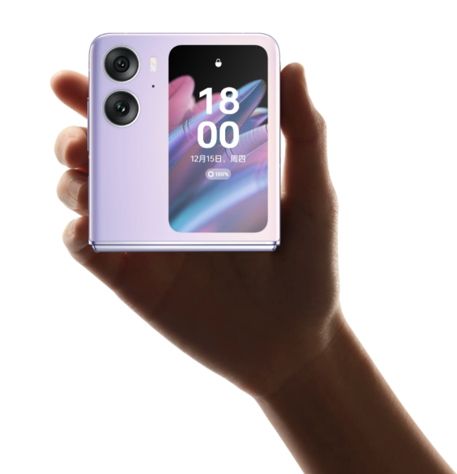 外屏便捷回复2,轻点一个OK!在「任意窗」,不止可以快速浏览信息,还可以用表情、短语或语音转文字快速回复,关键信息随时响应。可互动的外屏宠物,次次亮屏,次次惊喜。选择喜欢的宠物,设置为个性外屏桌面,不同时间宠物会呈现不同的状态,随时互动,趣味满满惊喜多多。同时系统支持自定义 GIF 壁纸,您的手机,由您自己装扮。一推即秀,应用双屏同开3。付款码、预约码、登机牌等二维码凭证,一步推送至外屏显示,主屏幕操作不受影响。内屏推,外屏秀,排队用手机也可以从容不迫。内外屏接力4,合上手机,外卖、步行导航、打车信息等关键内容也可以在外屏呈现,功能接续,省时省力。小折一下,打开拍照新视界,5000 万像素超清外屏自拍5,自拍从此大不同。拍摄新视野从此刻打开,用 Find N2 Flip 轻松获取高画质的后置自拍,照片、人像、视频三种模式选择,支持 OPPO 独家的美颜效果。单人或多人,闭合或悬停,从此只用主摄自拍。多角度随心拍,大片演绎毫不费力。手机多角度自由悬停6,轻松拍出各类型大片。多人轻松合影,宠物轻松同框,还有手势拍照帮您解放双手,解锁更多影像新玩法。外屏预览,会拍照的“朋友”就在身边。和朋友外出拍照,通过外屏实时看到画面中的自己,预览拍摄画面,调整拍摄姿势,轻松拍出满意的照片,一步到位,省心省力。