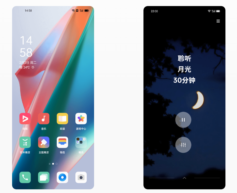 ColorOS 11.2,科技的善意,满满都是心意。无边界色彩,愉悦观感,柔和的视觉语言,无边的界面色彩:选色轻量聚焦,还原自然本色,双眼极度舒适,用颜色引导视觉重点与体验。听觉也值得被认真对待,不只是提示音,更是经过精心设计的悦耳旋律,通知音动态变化及全局通知轻反馈,音乐提醒知你心,更有 Hans Zimmer 浩瀚史诗级定制系统音乐。