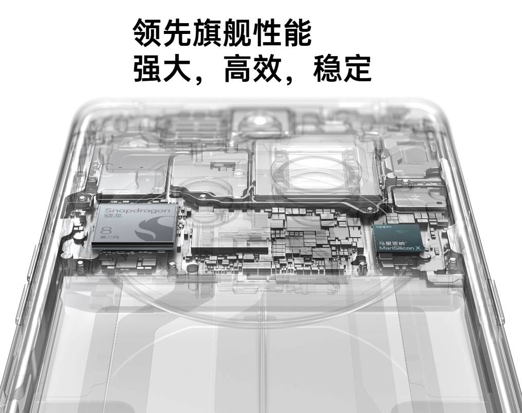 9. 散热能力数据源于官方实验室测算;相对于 OPPO Find X5 Pro,OPPO Find X6 Pro 的真空腔均热板面积增加了 24%。