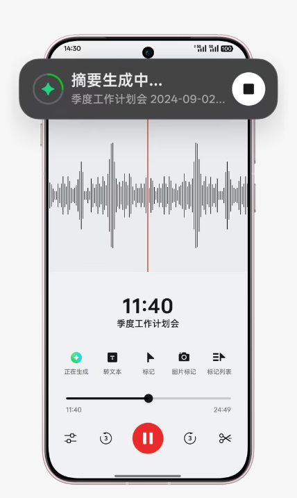 全场景语音通话摘要,语音通话、线下会议、线上视频,重点快速摘要。智慧文档,格式随心转换,Word、PDF 一键摘要,跨应用文件查找。智慧便签,AI 辅助润色、续写,智能排版,好文章信手拈来。