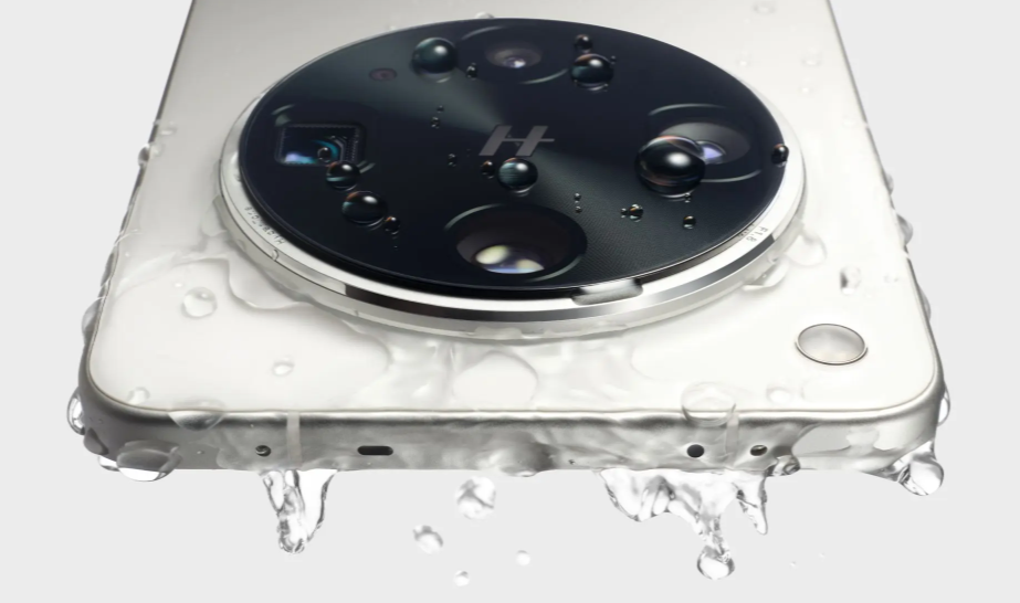 2. 产品在正常使用状态下可防水、防尘。在受控实验室条件下,经测试,其效果在 GB/T 4208-2017(国内)标准下达到 IP69、IP68 级别。其中 IP69 级防水测试条件为:①转盘转速:(5±1)r/min;②喷嘴角度:0°、30°、60°、90°;③流量:(15±1)L/min;④水温:(80±5)℃;⑤试验时间:30s/位置;⑥手机放置方式:水平放置,屏幕朝上。其中 IP68 级防水测试条件为:①无流动清水,水深 1.5 米;②试验时间 30 分钟;③水温与产品温差不大于 5 摄氏度。请勿在潮湿状态下为手机充电,生活场景与实验环境存在差异,日常使用请勿将手机浸入水中,或接触海水等溶液或饮品等液体。淋雨/浸水/溅水后,液体可能堵住麦克、听筒、扬声器的出音/收音管道,导致通话、外放时听/收音异常,甩干后静置晾干可恢复功能。防水、防尘功能可能会因日常使用损耗而下降。