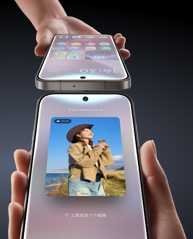 AI 实景对话²⁶,私人向导,指哪答哪,AI 一键问屏全新升级,支持 AI 实景对话,从手机屏幕走进现实,逛街探店、看展答疑一问便知,可连续对话、随时打断,同时支持声纹识别,嘈杂环境中也能听清你的指令,不想开口指一指屏内屏外也能问,指哪答哪。支持自然连续对话,打断回答即可切换指令,更贴近真实交流;指哪答哪,屏内屏外,一指即答,精准提问;声纹识别,人声再多、环境再吵,也能只听你讲。无缝互联,更好的跨生态体验。流体云、运动数据无缝流转²⁷,Apple Watch 可以接听手机来电、回复短信,还能查看外卖、打车等流体云信息,Apple Watch 上的运动记录等数据也能在手机上查看。用你的电脑操作你的手机²⁸,在与 Mac 建立连接之后,就可以将手机屏幕镜像投屏到 Mac 上,支持同开 5 个应用窗口,还可以用 Mac 快捷键操作;同时手机收到的应用通知,也会无缝流转到 Mac 上。来电、短信、通知实时同步²⁹,现在你可以在 OPPO 手机上随时接听 iPhone 来电,短信、通知也能实时同步,双机合一,不用来回切换手机,告别手忙脚乱。一碰互传,还能传更多,OPPO 设备间还支持分享更多内容,图片、视频、文档、便签、联系人、短视频等内容,都可以快速分享,OPPO 生态互传速度上限高达 224MB/s³⁰。