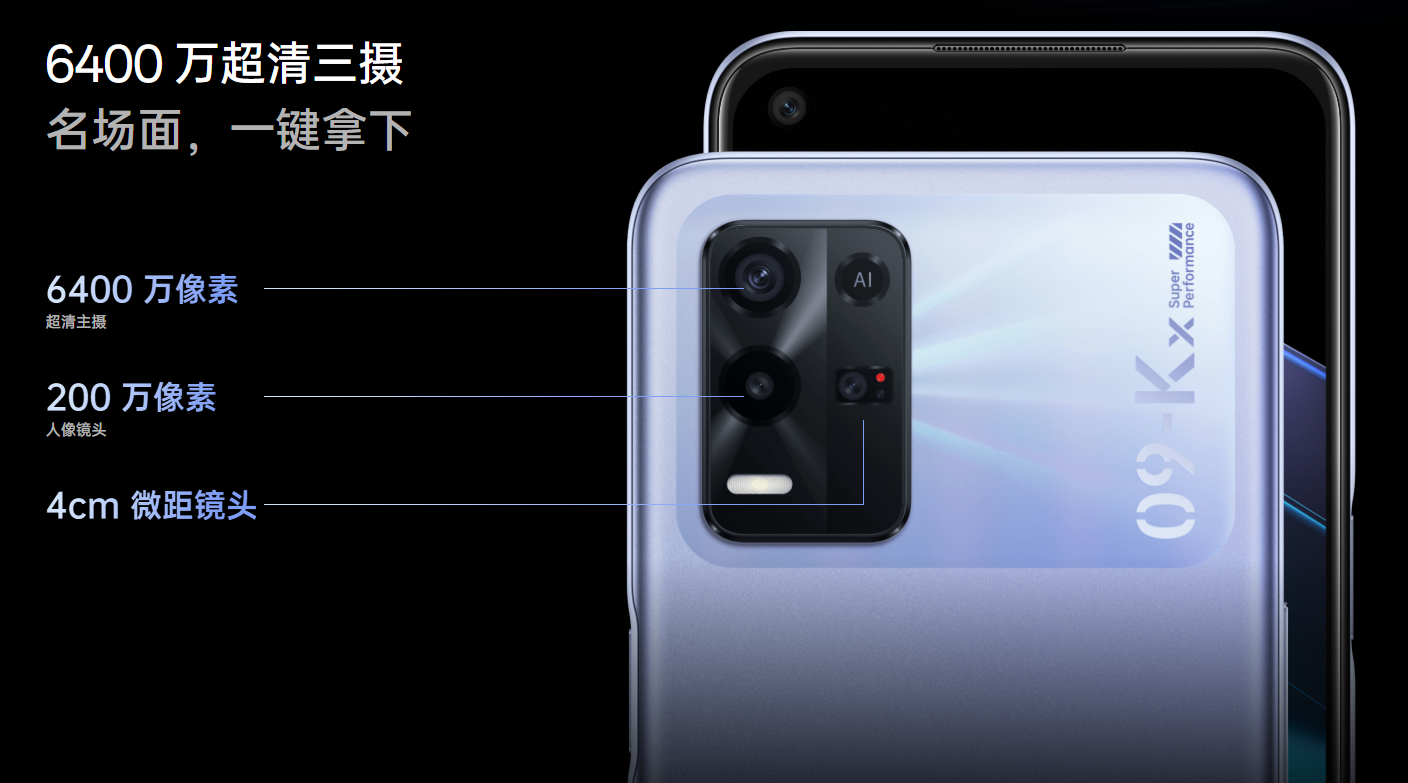 超清影像方面,6400 万超清三摄,名场面,一键拿下。6400 万像素超清主摄、200 万像素人像镜头、4cm 微距镜头,配置实用。由 K9x 超清夜景实拍,精彩夜生活,由此打开;由 K9x 6400 万像素超清主摄实拍,高画质大片,拍照根本停不下来;由 K9x 超清画质实拍,又是亿点小细节;由 K9x 前置 1600 万像素超清美颜实拍,轻松逆袭,天生好皮。