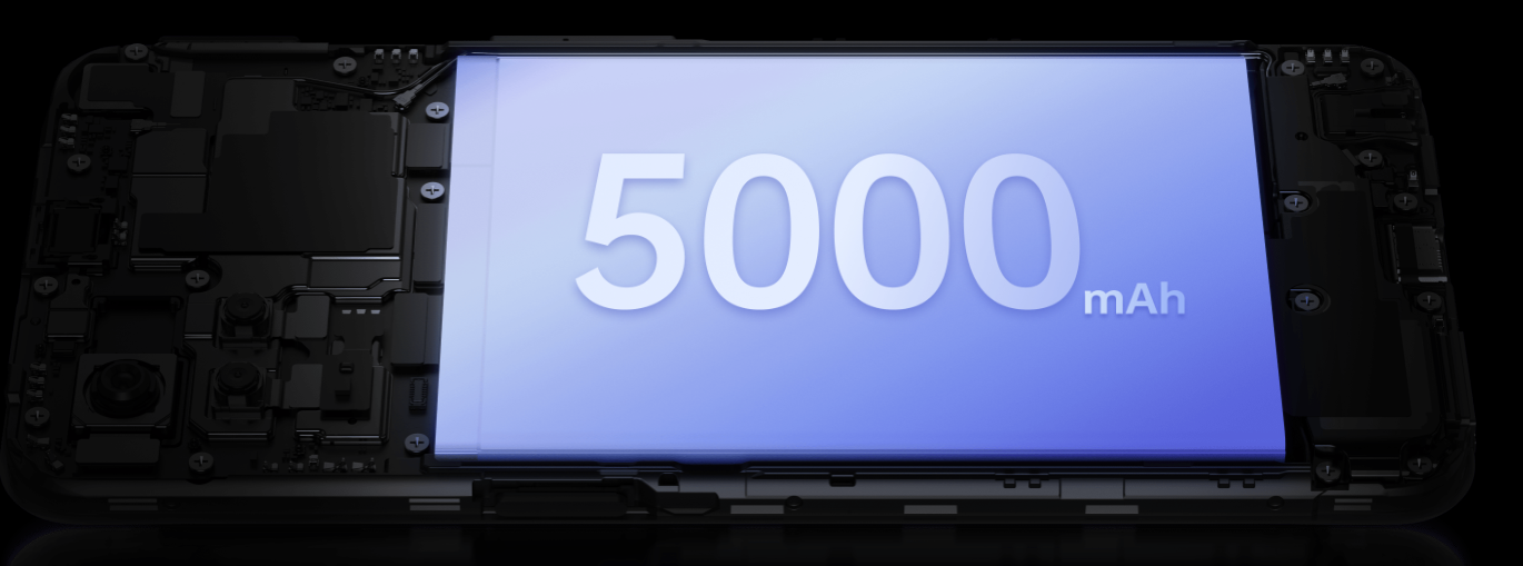 5000mAh 超大电池,实现电量自由,开黑奉陪到底,堪比移动充电宝,出门给你加大号的安全感。搭载 33W 超级闪充,超大电池也能疾速回血,仅需 27 分钟即可从 1% 充至 50%⁴,真不愧是充电届的“时间管理大师”。5000mAh 电池续航表现出色,约 20 小时爱奇艺追剧,约 13 小时刷抖音,约 9 小时玩王者荣耀,约 9 小时微信视频聊天。