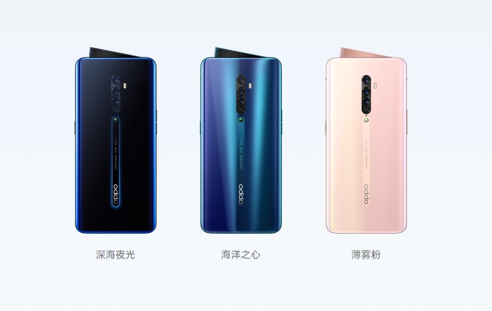 OPPO Reno2有深海夜光、海洋之心、薄雾粉三种颜色。