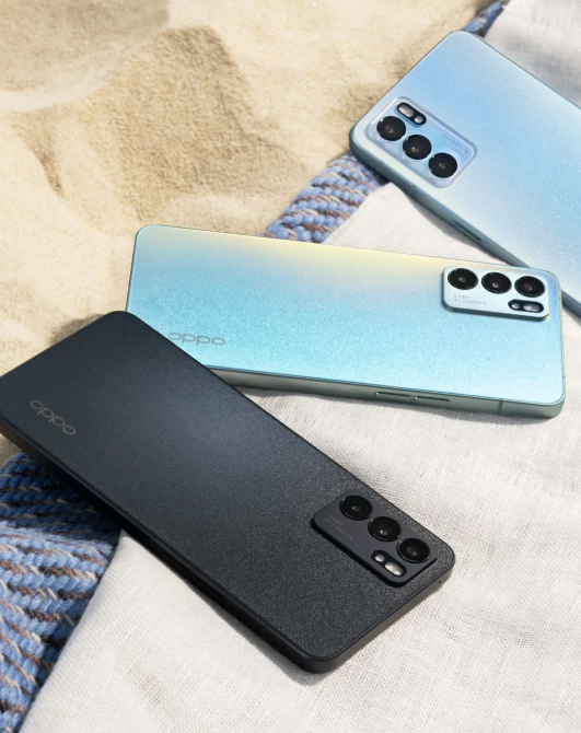 1. Reno6 “夏日晴海”配色采用晶钻工艺3.0,而“星河入梦”和“夜海”配色则采用晶钻工艺2.0。产品最终效果可能存在个体差异,带来不尽相同的色彩和细节表现,图片仅供参考,请以实物为准;