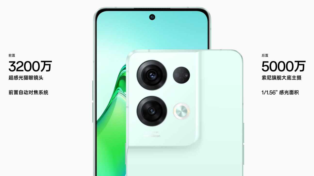 拥有双芯人像科技,让人像拍摄从此得「芯」应手,其配备自研马里亚纳 ®MariSilicon X 芯片、天玑 8100-MAX、长寿版 80W 超级闪充、前后双旗舰人像镜头、120Hz OLED 超清屏,采用流云双镜设计。在影像方面,它有自研影像专用 NPU 芯片,采用 6nm 旗舰制程工艺,具备 18 万亿次 / 秒 AI 算力和 20bit 无损画质处理能力,双芯人像摄影系统为旗舰同款配置。Reno8 Pro + 拥有自研马里亚纳 ®MariSilicon X 芯片 ¹,并搭配旗舰人像镜头和 OPPO 独有的人像算法矩阵,形成专业的双芯人像摄影系统,打造细节清晰、色彩真实的拍摄效果。芯片级 4K 超清夜景视频拥有 4 倍于 1080P 视频的高清画质,自研马里亚纳 ®MariSilicon X 芯片拥有 18 万亿次 / 秒的 AI 降噪能力,能降低噪点与偏色,极大提升夜景视频纯净度,让每一帧都像超清夜景照片。两颗芯片协同计算与仅使用一颗芯片计算相比,4K HDR 视频无惧逆光,通透清晰,因为自研马里亚纳 ®MariSilicon X 芯片拥有最高 20bit HDR 计算能力,可以呈现更宽广的动态范围,亮部不过曝,暗部也保留了大量的细节,人脸逆光也清晰。原生肌理级自拍能让每一寸肌肤都好看,自研马里亚纳 ®MariSilicon X 芯片结合焕采美颜算法,保留大量肤质细节,肤色还原更自然,拍出原生呼吸感;五官级特写自拍让人放大拍更心动,强大的 AF 自动对焦系统,能够拍摄眼、鼻、嘴、下颌线等部位超清特写,睫毛根根分明。它的前置是 3200 万超感光猫眼镜头,有前置自动对焦系统;后置为 5000 万索尼旗舰大底主摄,感光面积 1/1.56”,后置逆光人像明暗都清晰,AI 焕采美妆可实现一秒上妆,带来素颜自由,动态抓拍引擎是随手抓拍的出片利器,焕采光斑人像能让氛围人像一拍即得,前置暗光人像越夜越精彩,AI 焕采美颜自然清晰有质感。