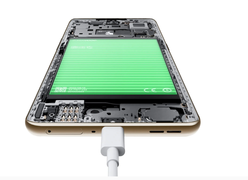 3. 本电池采用单电芯电池,电池额定容量为 4390mAh。该机型支持大电流超级闪充,为保障用户使用安全,电池已做特殊加密处理。若使用非原装电池,将影响本产品的正常使用,包括但不限于充电慢。若有电池维修更换需求,请务必到 OPPO 官方授权服务体验中心维修更换正版电池。