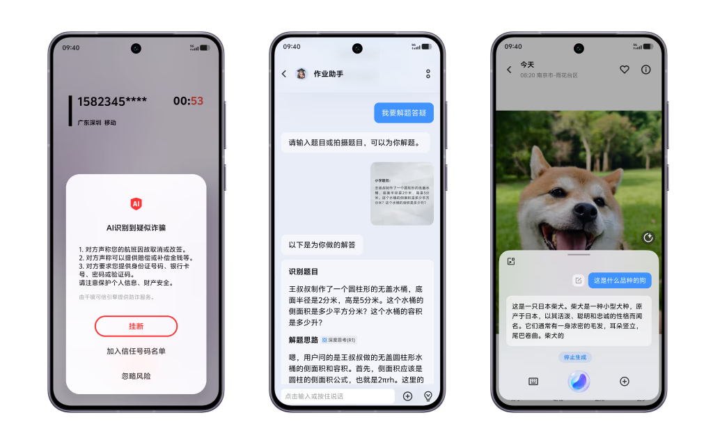 AI好帮手,生活好拍档。配备AI防诈盾牌²²,智能识别陌生来电的诈骗风险,保护你的钱袋子,通话内容由端侧AI模型分析,不上传云端,仅当检测到诈骗风险时,在本地加密保存相关片段,用于安全追溯。拥有蓝心小V -作业助手,作业难题,一拍上传即可快速完成检查、批改和难题解答。支持小V问屏,长按电源键唤醒小V,无需选中图片或文字,快捷获取屏幕中想知道的信息。