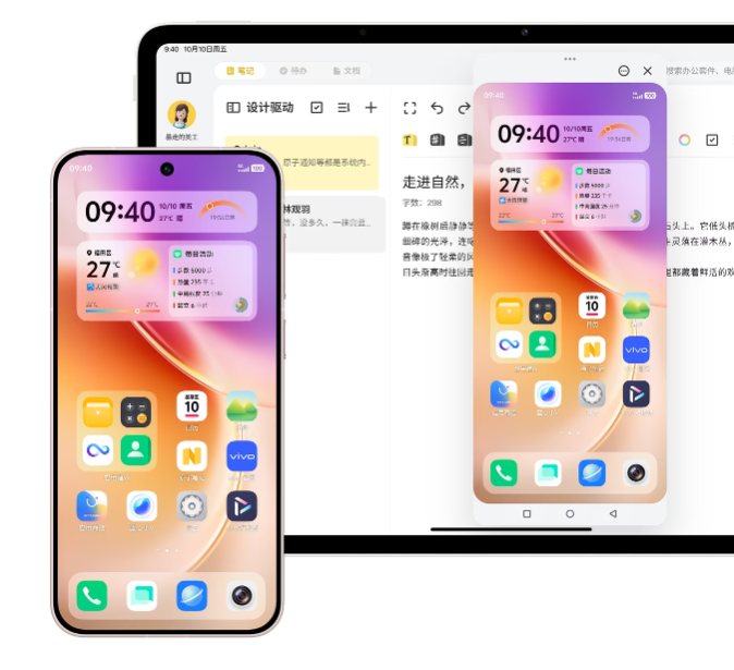 24.跨生态平板指 iPad,需在 App store 中下载并安装 iPad 版本 vivo 办公套件,iPad 系统版本需在 14 及以上。该功能通过 OTA 推送,请搭配升级到最新系统版本,即可体验。界面 UI 仅供参考,请以实际使用为准。