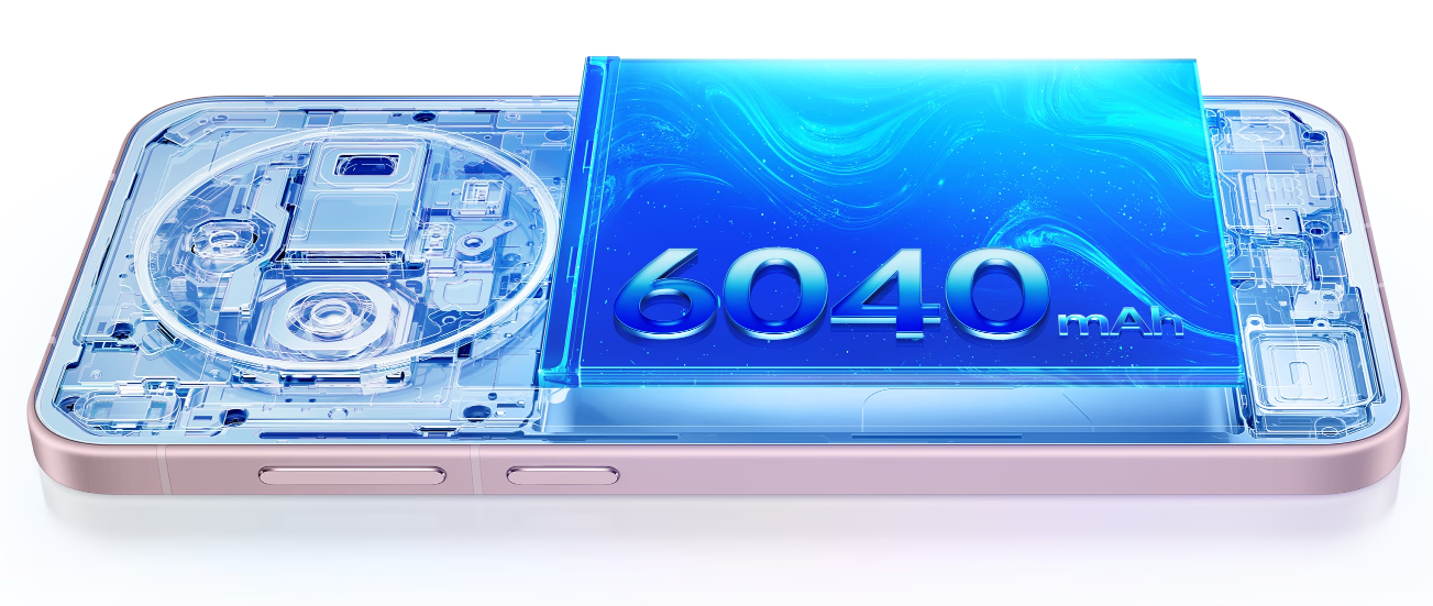 6040mAh蓝海电池¹⁴,超高能续航,超持久,超酣畅,采用第四代硅负极技术,能量密度提升、电池容量突破;无论娱乐或办公,都能敞开用。搭载第四代硅负极技术,密度更高、容量更大、体积更小;采用第二代半固态电池技术,身处严寒环境,依旧稳定放电¹⁵。支持90W¹⁶超快闪充、40W¹⁶无线闪充。蓝海续航系统,时刻为你省电,配备场景能效引擎2.0,全场景能效引擎 + 高效能存储架构,轻载、重载场景高能降耗增效;异构计算空间3.0,智算大师,可降低CPU负载,进而降低功耗,显著提升视频、音频场景的续航时长;系统轻量化3.0,电池后台“代理人”,贴心关闭后台“偷跑”任务,有效降低后台负载,续航更持久;全局直驱供电2.0,支持智能温控,边玩边充,够稳够丝滑;微电精灵¹⁷2.0,手机接近没电时自动进入「微电精灵」模式,接入电源退出模式,可直接恢复进入前的任务界面,使用更贴心。