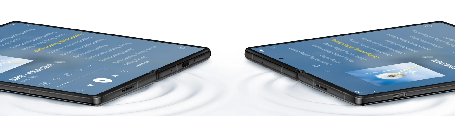 折叠尊享,创新不停,折叠尊享创新不停,悬停,多角度悬停¹⁵,创新体验,把 vivo X Fold+ 悬停支起来,解放双手:看视频、跟着教程锻炼,拍照取景更有新姿势。*视频通话除 QQ 和钉钉外,新增企业微信(10月中旬上线)等应用适配,视频画面的清晰程度依照实际 APP 体验为主。*新增适配: i 视频、咪咕视频、芒果TV、央视影音、央视频、虎牙、斗鱼、每日瑜伽、混沌。悬停视频通话升级,企业微信、QQ、钉钉等*视频通话时,手机折叠为悬停态放置静处,上半屏可显示视频通话内容,下半屏可点击控制静音、共享(QQ 不支持)等操作,自由解放双手,做笔记,整理文件,肢体语言互动更加便捷。悬停观影,观看视频时,将手机折叠为悬停态,即可实现上半屏观影, 下半屏点击控制播放进度、音量、亮度。*视频通话除 QQ 和钉钉外,新增企业微信(10月中旬上线)等应用适配,视频画面的清晰程度依照实际 APP 体验为主。*新增适配: i 视频、咪咕视频、芒果TV、央视影音、央视频、虎牙、斗鱼、每日瑜伽、混沌。