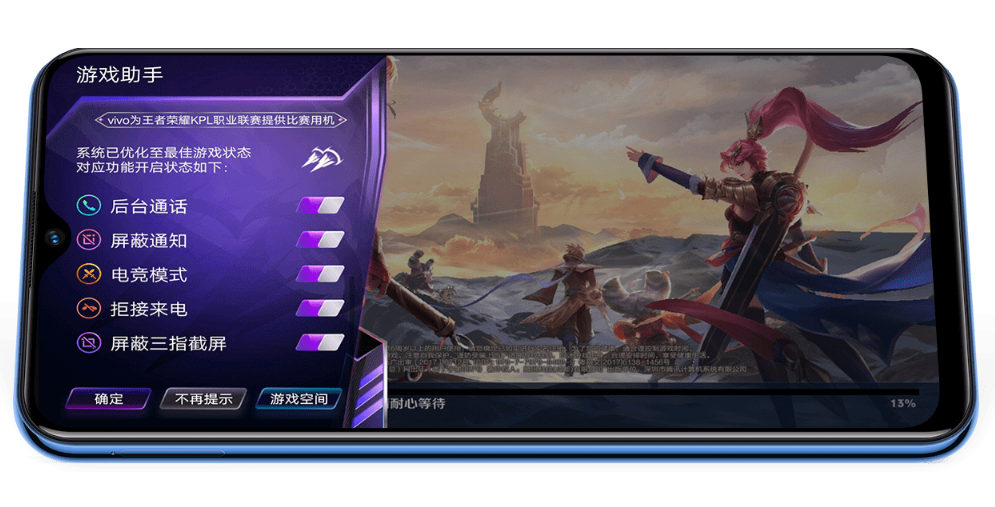 专为长辈们设计的简易模式,操作便捷,防止误触,让爸妈也能享受科技带来的便利与快乐,对长辈的关怀,通过屏幕继续传递。进阶优化游戏模式——游戏魔盒vivo Game Cube,开启后台挂机,大型游戏切出后,仍在后台不中断运行,刷经验、聊微信、看视频都不耽误。电竞模式2.0,将王者荣耀KPL职业选手所便用模式,更有效地调用资源,让您的手机与您共同专注竞技,助您夺得"最强王者"。*后台挂机模式仅支持《梦幻西游》、《倩女幽魂》、《天下》手游,电竞模式2.0仅适支持的"吃鸡"游戏包含《和平精英》、《绝地求生:全军出击》、《荒野行动》等。