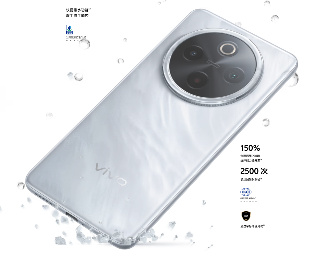 13.数据来源于 vivo 实验室,抗摔能力比较对象为 Y300 Pro 金刚盾玻璃。实际可能会因为测试设备、测试环境、个人使用方式与习惯等不同而产生差异,请以实际体验为准。手机属于精密电子产品,手机跌落、碰撞仍有损坏风险,日常使用须注意避免跌落、碰撞。