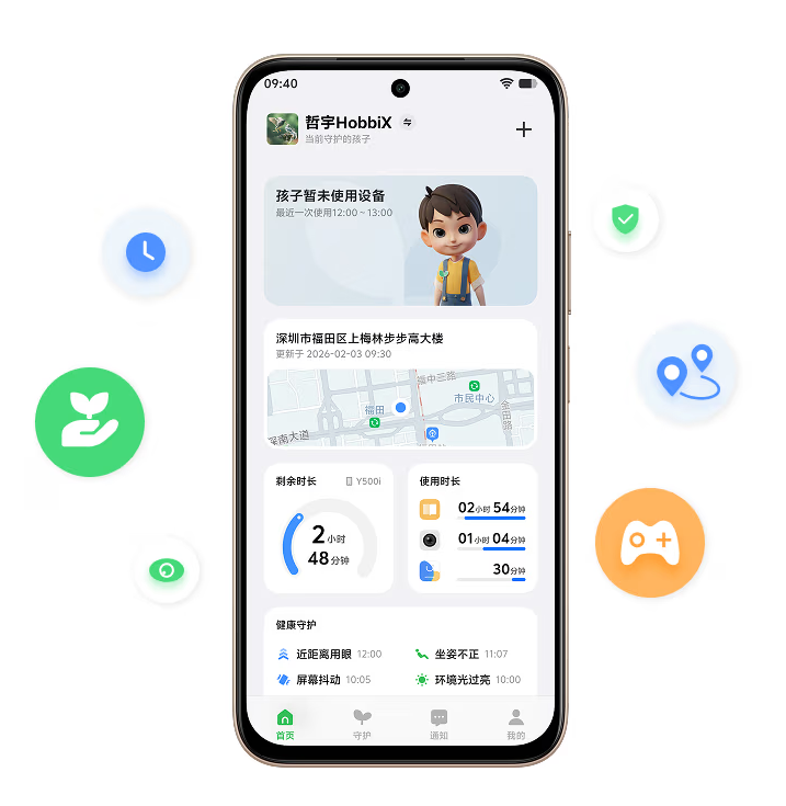 * 孩子守护为未成年人网络保护软件。为家长提供远程守护孩子学习、健康、安全的能力,帮助孩子建立健康的用机习惯。OriginOS 1.0 以后机型均支持孩子守护功能,可以通过 vivo 应用商店下载安装。