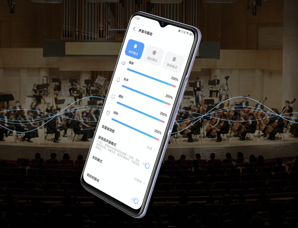 音质提升方面,Y53s实现音质大幅度提升,频域扩展至130%、低音提升至200%、中频提升至217%。Super Audio 2.0自研音效堪比专业调音师,智能识别场景,逐个专业调校,突出细节,让音乐与视频更加身临其境,并有17级音量随你定。开启超级扬声器模式后,音量至高可达200%,自带专属UI,简约便捷,支持智能模式、电影模式、音乐模式、游戏模式。